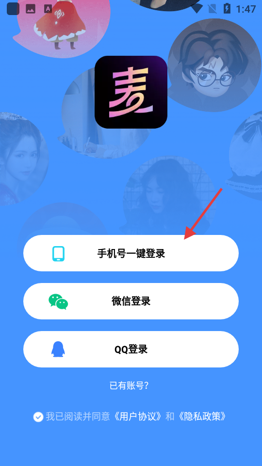 1、在登录页面选择【手机号一键登录】。