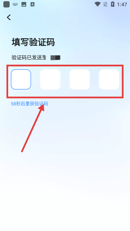 3、输入收到的四位数验证码。