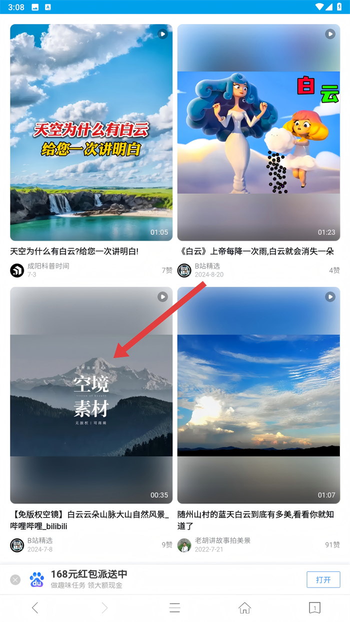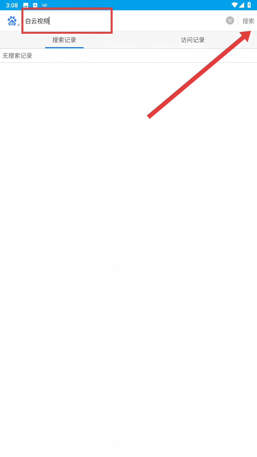 1、我们在久久浏览器的搜索栏输入【白云视频】,点击【搜索】,开始查找想要缓存的视频呀。