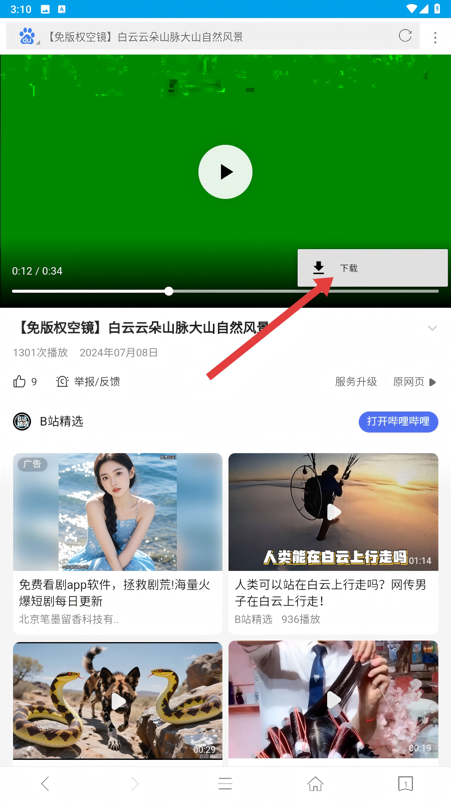 4、在功能菜单里,我们点击【下载】,就能将视频缓存到设备里,方便后续观看啦。