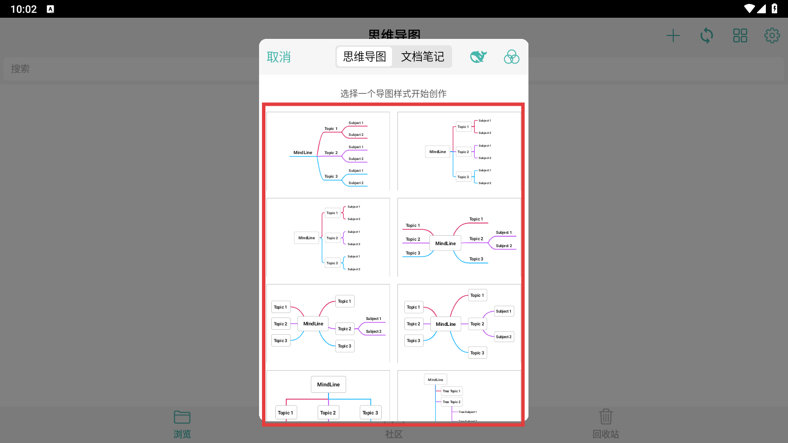 1、我们打开【思维导图】,在样式选择页挑选喜欢的导图样式,就能开启创作啦。