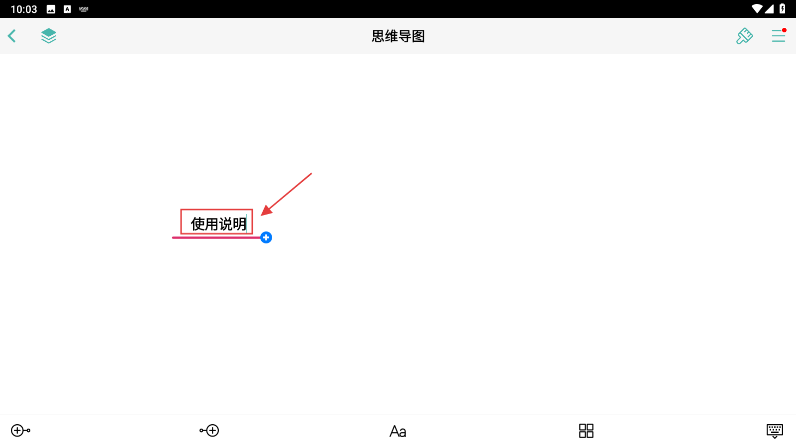 2、进入创作界面后,我们可以输入中心主题,比如【使用说明】,再点击主题旁的加号,添加子分支哦。