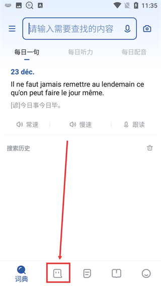 1、打开法语助手APP,点击导航栏的第四个按钮,进入【学习】界面