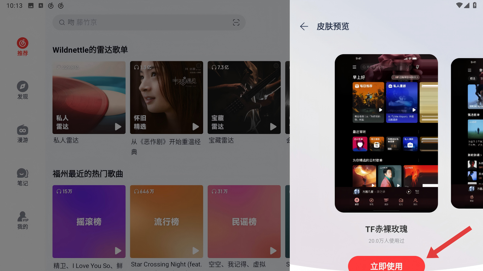 4、选中心仪的皮肤后,会进入【皮肤预览】界面,确认喜欢的话,点击【立即使用】,就能让软件换上新装扮咯。