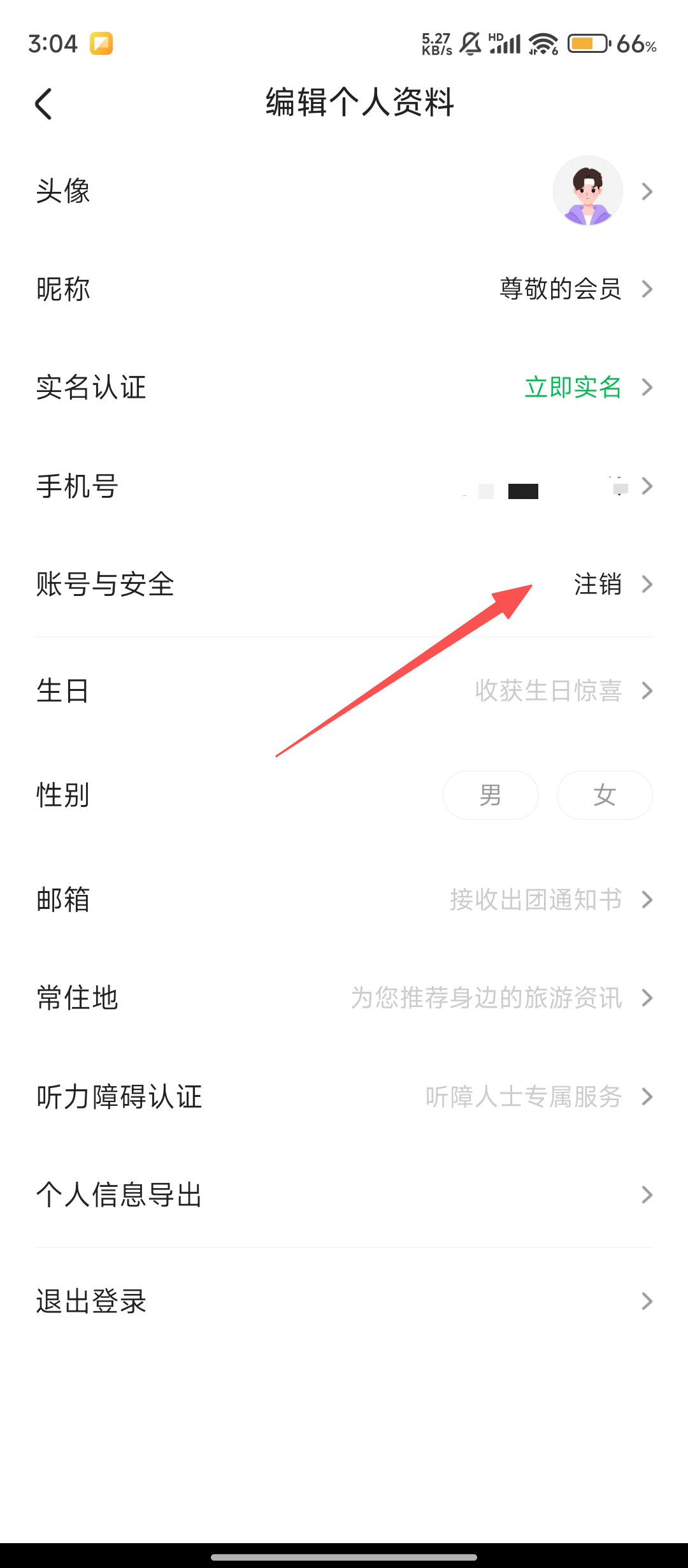 3、在编辑个人资料页,找到【账号与安全-注销】并点击,即可进入账号注销的关键环节,别错过哦。