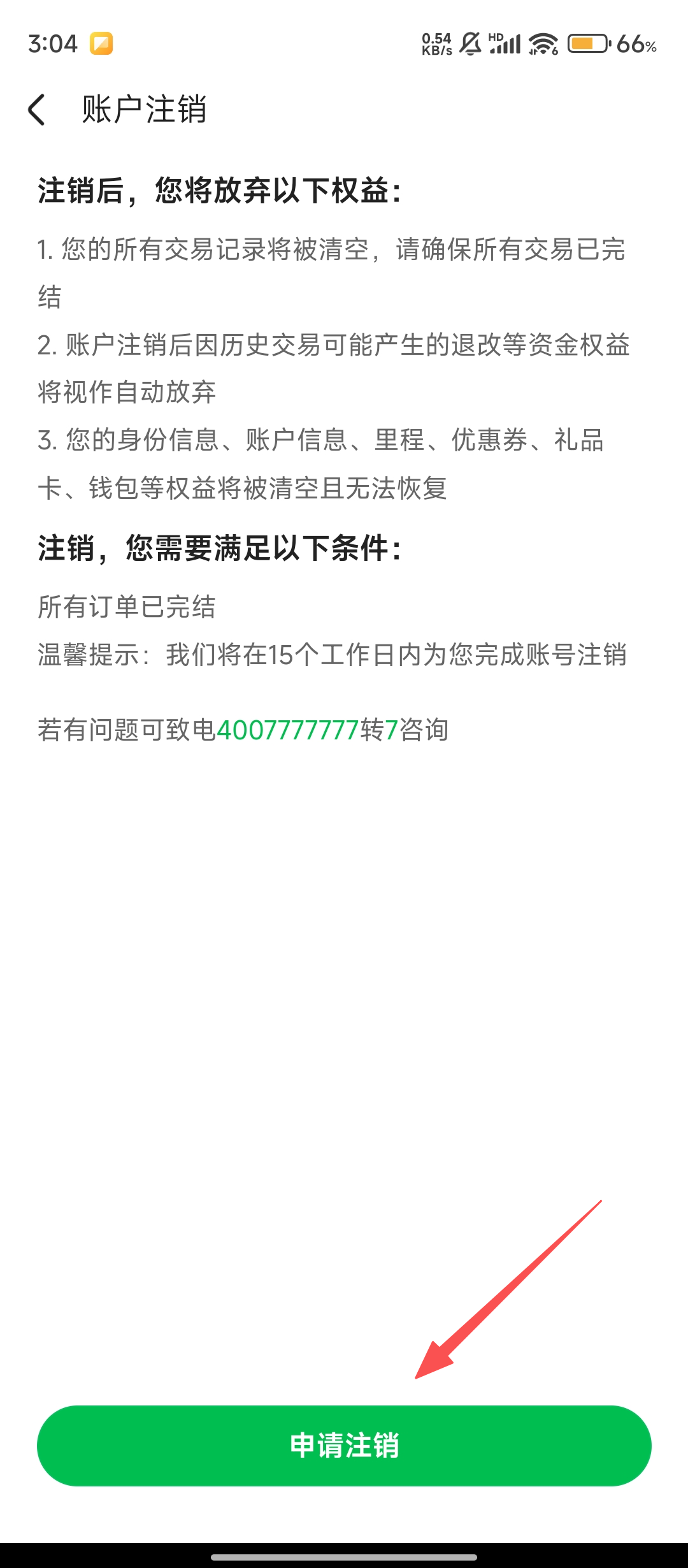 4、进入账户注销页,确认权益放弃和条件满足后,点击【申请注销】,就能完成账号注销操作,流程就这么顺畅呢。