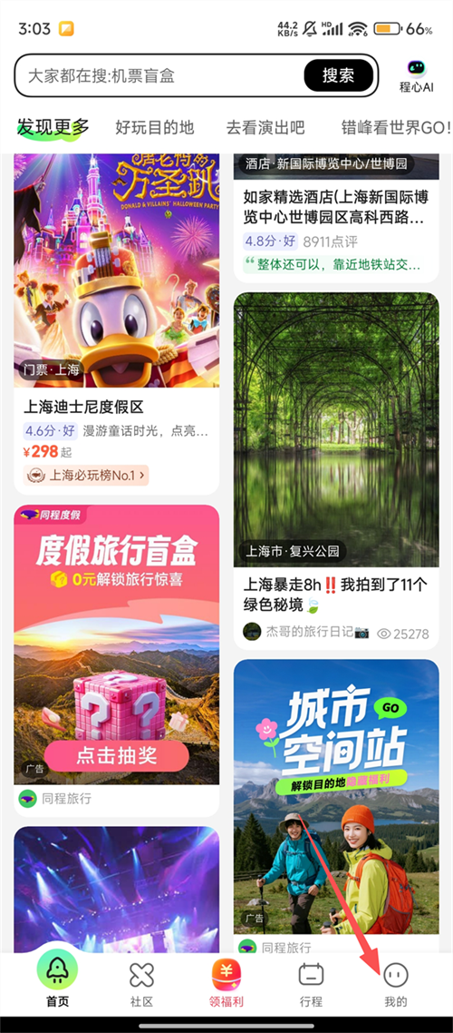 1、打开同程旅行,点击底部【我的】,进入个人界面,开启账号注销的第一步,操作很是清晰哦。