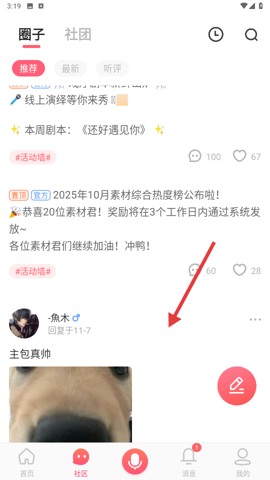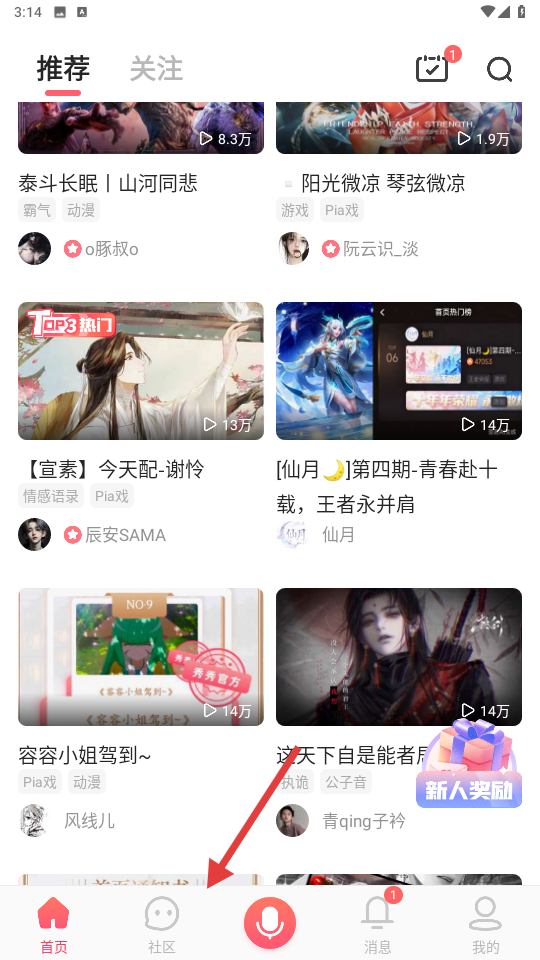 1、在APP首页,点击底部【社区】,进入社区互动页面。