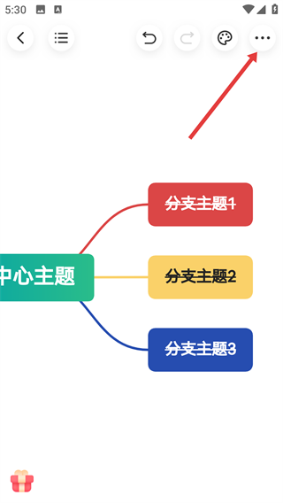 2、在思维导图编辑页,点击右上角三个点按钮,打开更多操作菜单,这里有导出等功能选项哦。