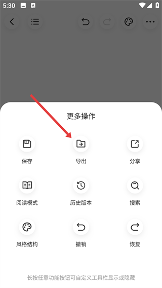 3、在更多操作中,点击【导出】选项,进入导出格式选择页面,准备选择PDF格式啦。