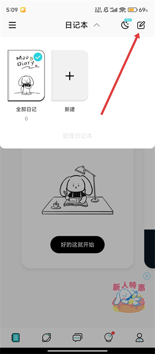 1、打开Moo日记,点击右上角【编辑】图标,进入日记编辑流程呢。