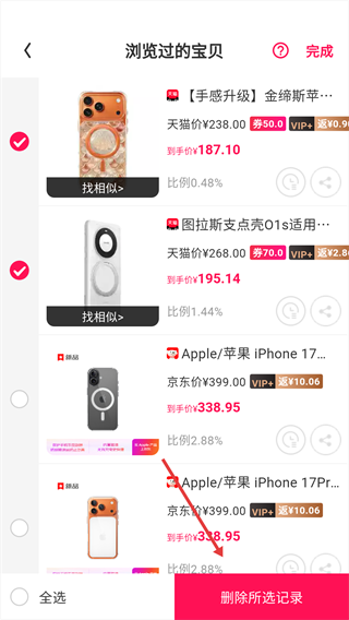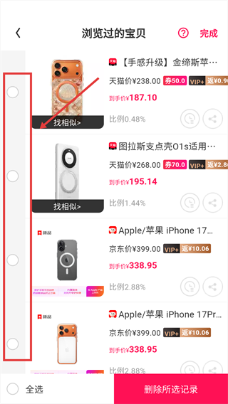 4、勾选完成后,点击页面底部的“删除所选记录”按钮,完成删除操作。