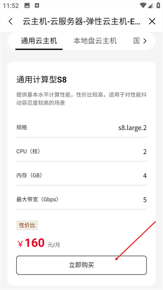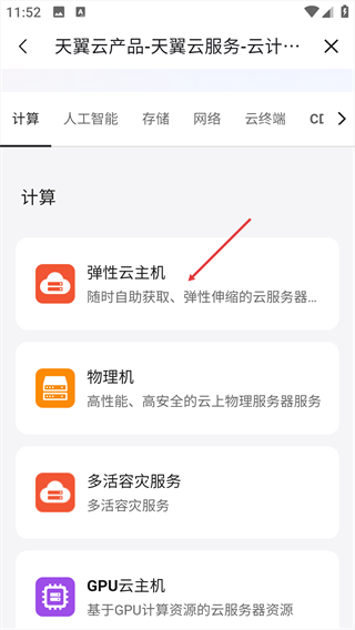 2、选择【弹性云主机】选项,进入弹性云主机的规格选择页面。