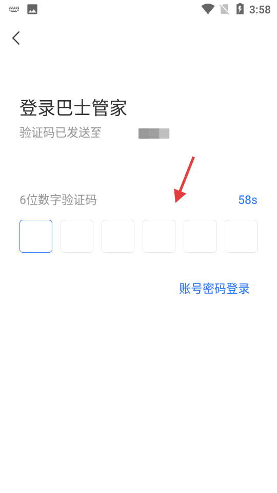 4、在验证码输入界面,输入收到的6位数字验证码,完成登录操作。