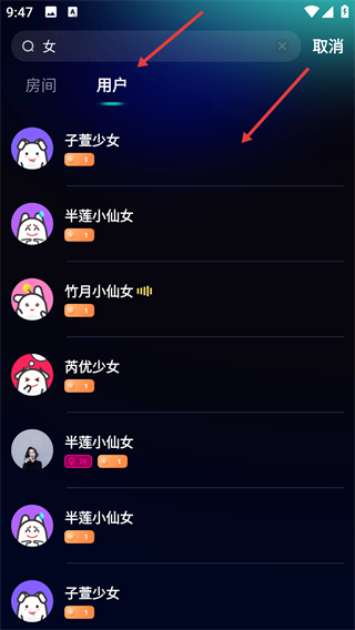 3、切换至“用户”标签页,选择目标用户进入主页。