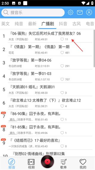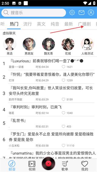 1、打开【轻音社】,点击顶部【广播剧】标签,进入广播剧内容界面。