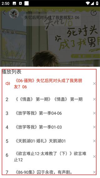 4、在播放列表中选择对应剧集,即可收听该广播剧的完整版内容。