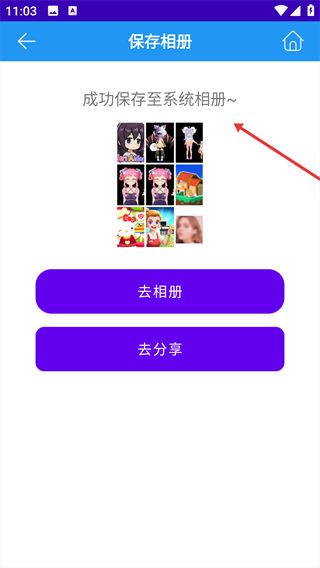 4、九宫格完成后,系统提示“成功保存至系统相册”。