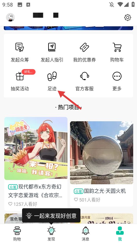 2、在个人页面点击【足迹】,进入我的足迹界面。