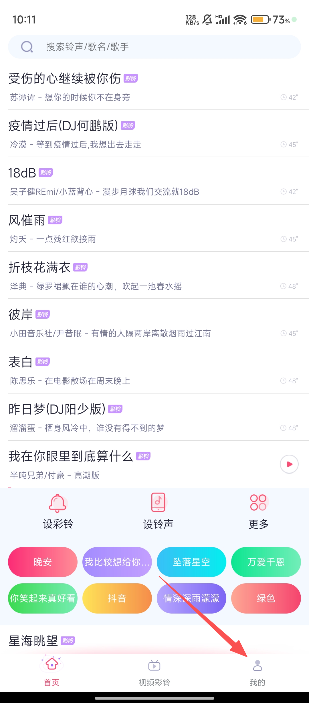 1、打开【酷音铃声】APP,点击右下角【我的】开始更换铃声的操作啦。