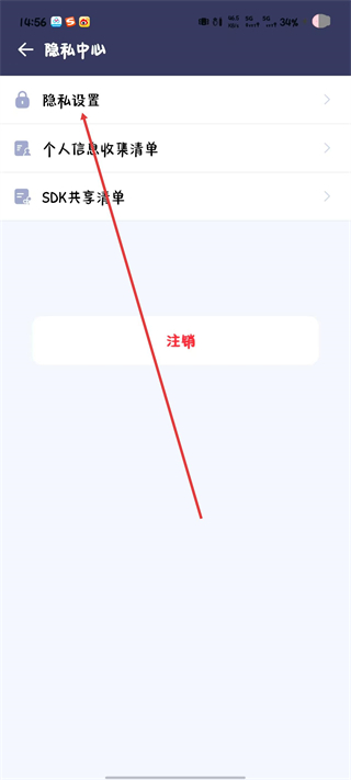 3、在隐私中心页面中,找到隐私设置选项,点击进入应用的权限管理页面。