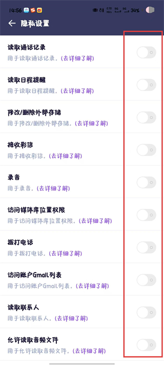 4、在权限管理页面内,找到目标权限对应的开关,点击调整权限的开启状态。