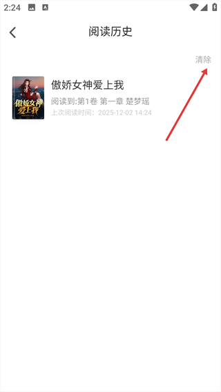 3、进入【阅读历史】页面,点击页面右上角的【清除】按钮执行操作。