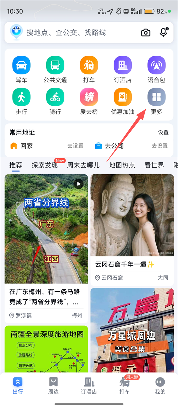 1、打开百度地图APP后,在出行界面点击【更多】;