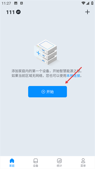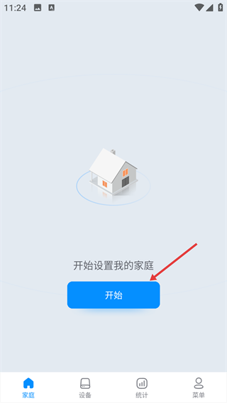4、完成上述设置后进入家庭主页面,点击“开始”按钮,即可启动添加家庭内设备的流程。