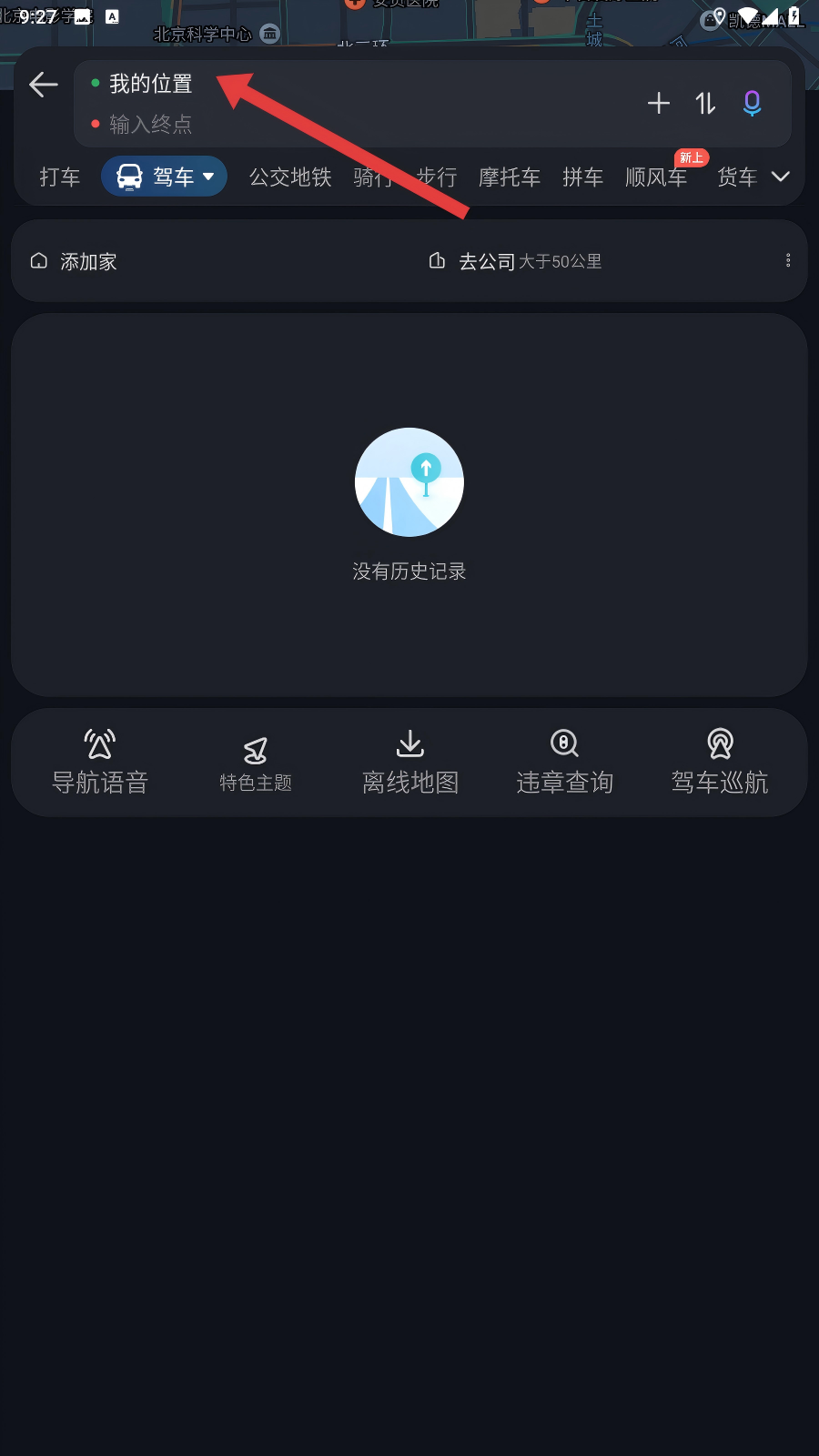 2、在路线规划界面,点击【我的位置】,可快速定位当前所在地点,作为出行起点哦。