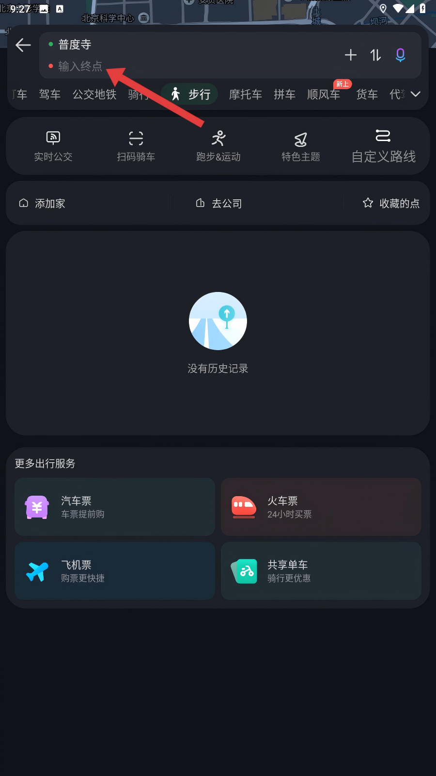 3、接着点击【输入终点】,输入想要前往的地点,为规划路线做准备呢。
