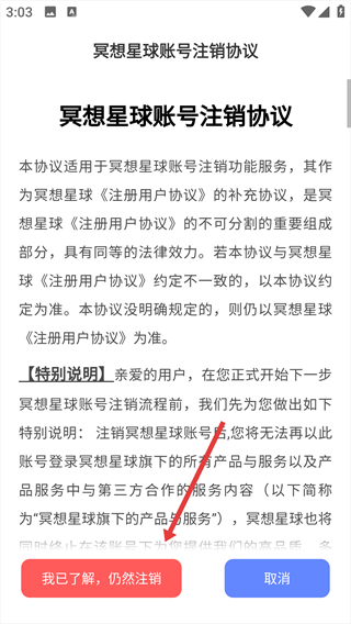 4、阅读协议内容后,点击“我已了解,仍然注销”按钮,完成账号注销流程。