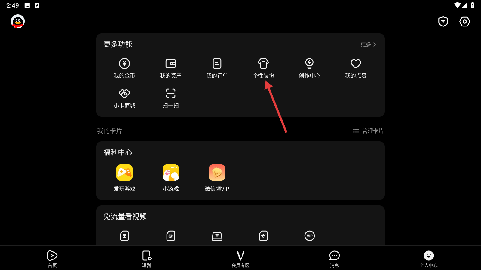 2、在个人中心页面里,我们可以找到【个性装扮】选项,点击它进入相关的设置界面哦。
