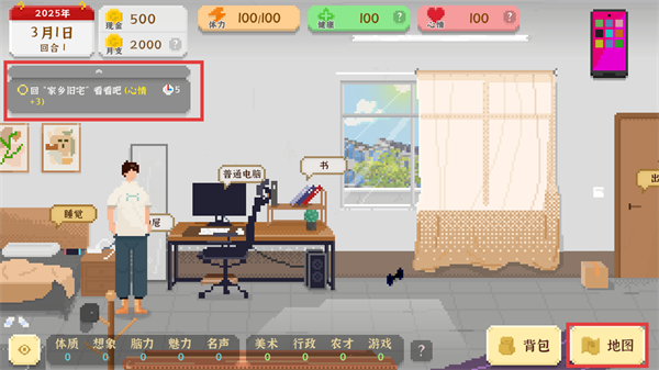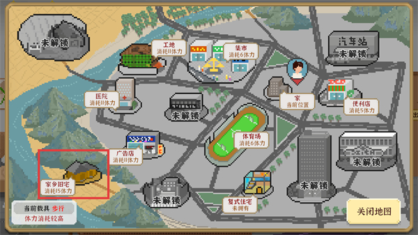 1、点击【地图】前往【家乡旧宅】,完成任务可获得【心情+3】,需注意体力消耗,合理规划行动节奏。