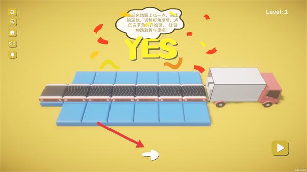 4、箱子成功运输到货车后,显示“YES”提示,点击箭头按钮进入下一个关卡。
