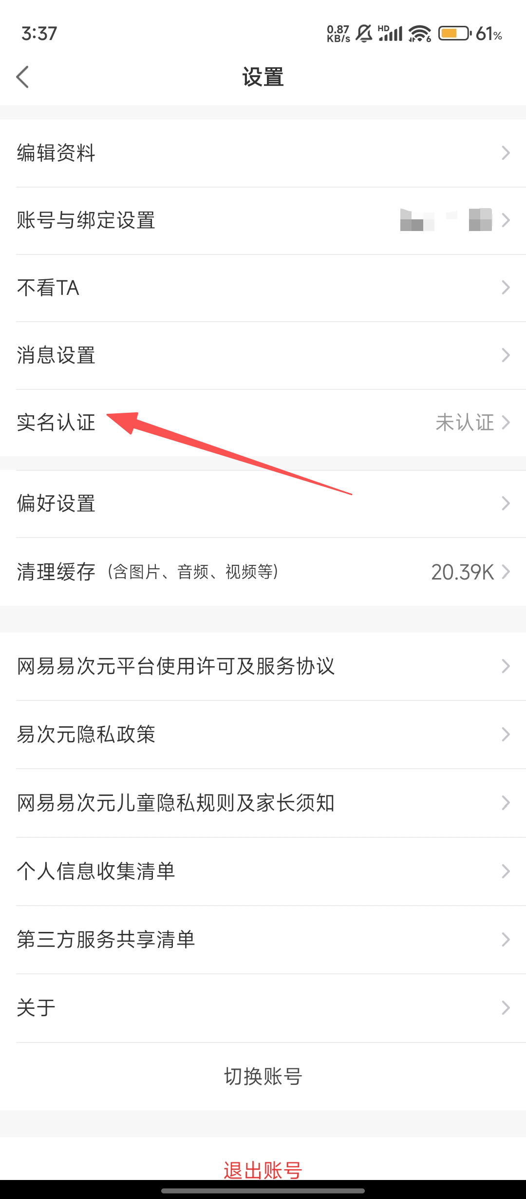 3、进入设置后,找到【实名认证】选项,点击它就能进入认证流程哟。
