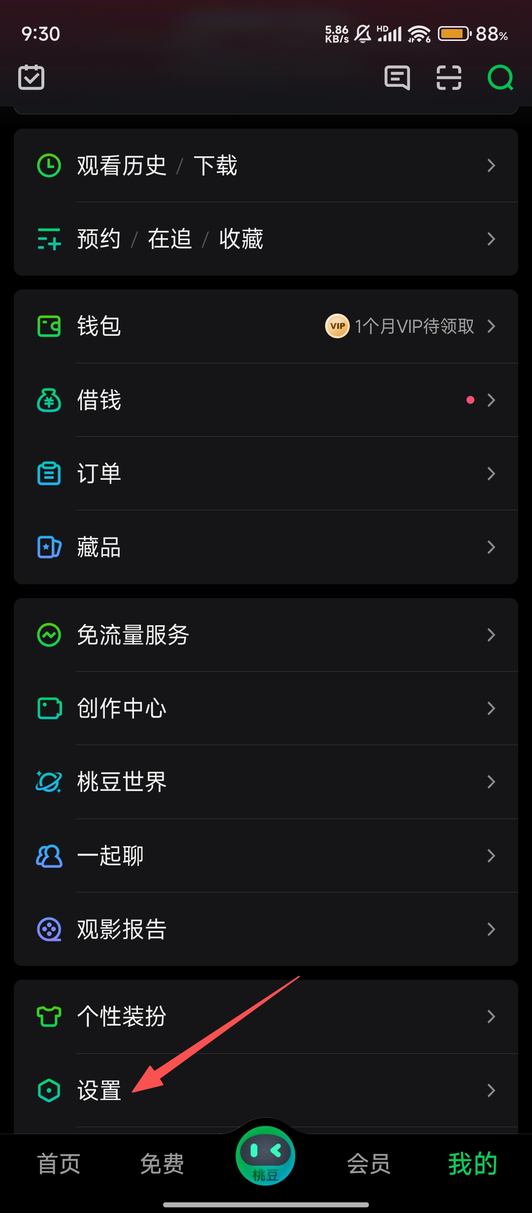 2、进入【我的】页面后,往下滑一滑,就能看到【设置】选项啦,点击它进入设置界面,继续下一步操作哟。