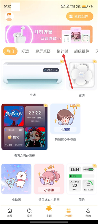 2、进入后能看到【热门】、【倒计时】等分类,选择对应分类即可查看相关组件样式,按需挑选。