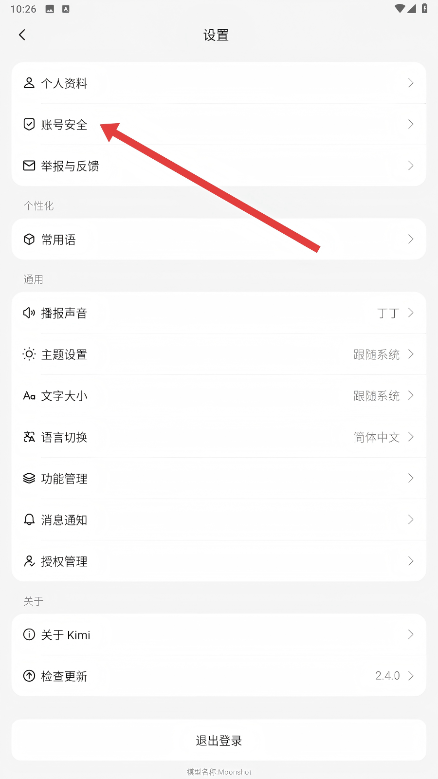 2、在设置界面,我们需要点击【账号安全】选项,进入账号安全的管理页面,为换绑手机号做好准备哦。