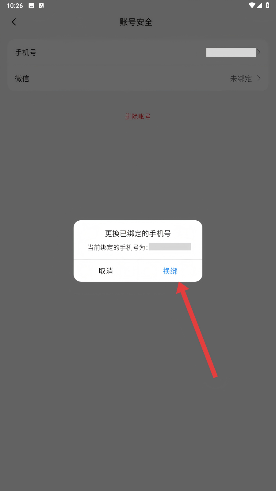 4、在更换手机号的弹窗中,我们点击【换绑】按钮,按照提示步骤操作,就能完成手机号的换绑,保障账号安全啦。
