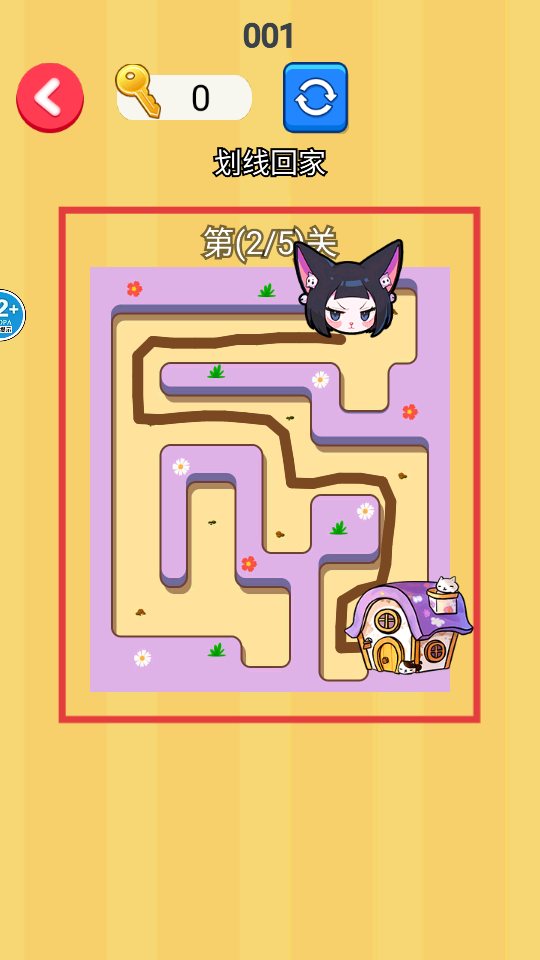 2、进入【第(2/5)关】,观察迷宫布局,通过手指在屏幕上按照方框内进行绘画路线即可通关。