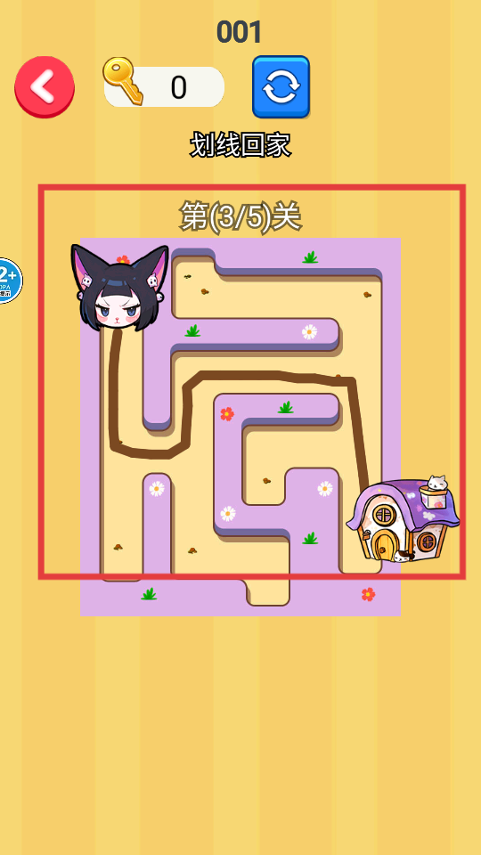 3、在【第(3/5)关】中,确保路线能够避开障碍,连通角色与房屋即可通关。