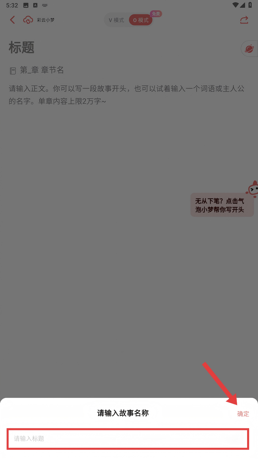 2、在弹出的输入框里填入故事名称,点击【确定】,进入后续创作设置环节。