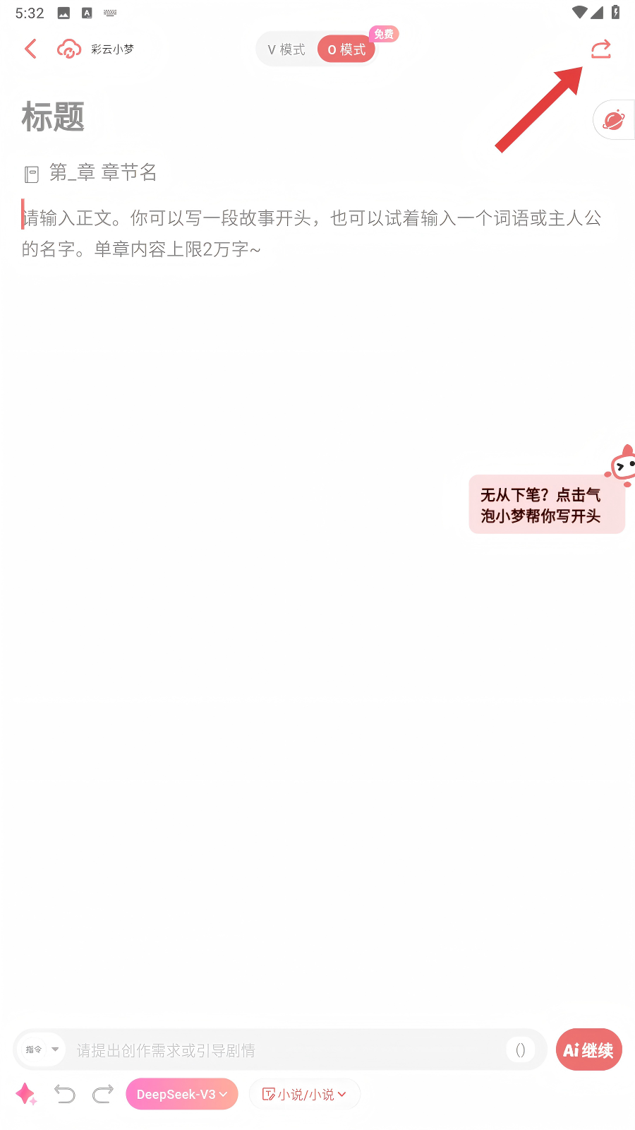 在创作页面输入一段文字,点击「AI小梦来帮写」,小梦马上呈上三条不同故事走向。小梦内置多种续写风格,V2版专业模型等你体验。