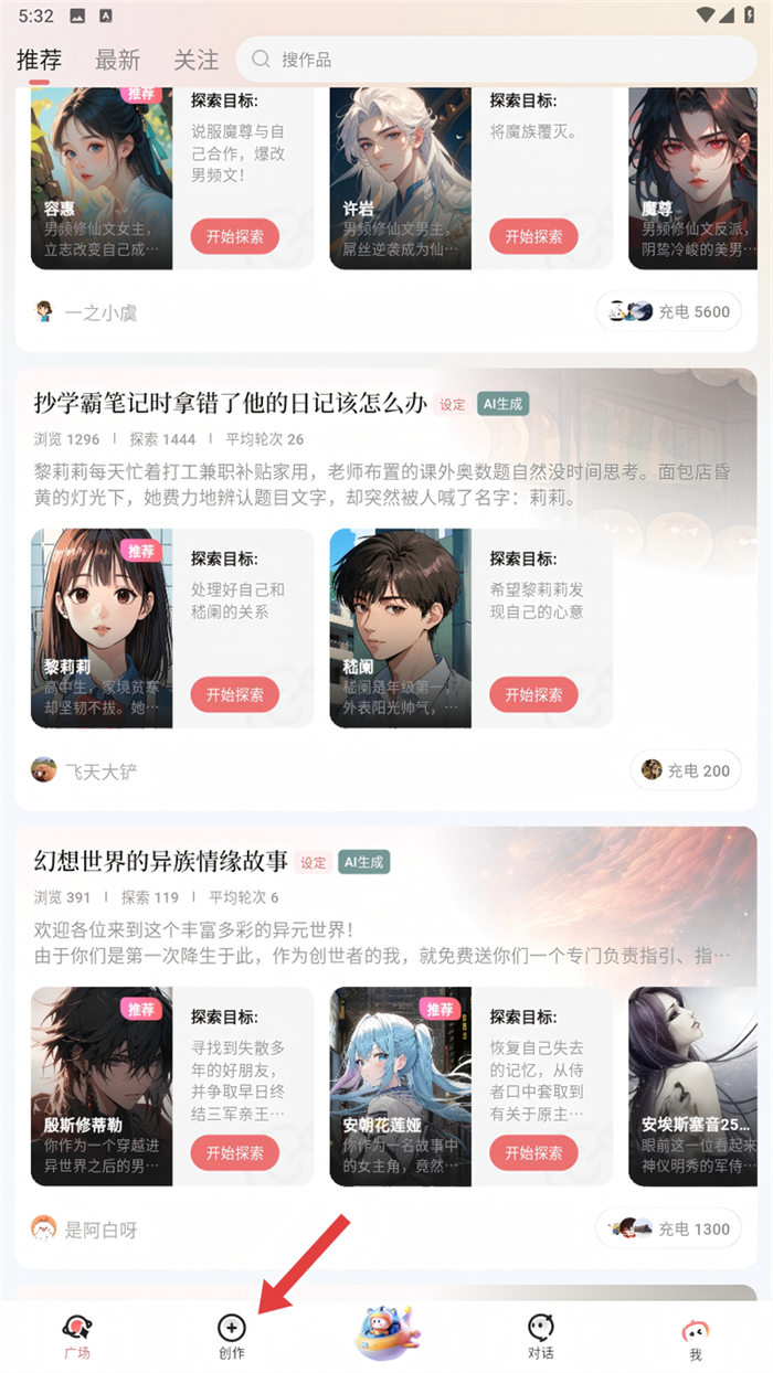 进入广场页面,点按“推荐”,就能看见小梦为大家准备的世界。切换tab,可按时间线顺序查看大家分享的世界~与每个人的世界相遇,开启专属故事!