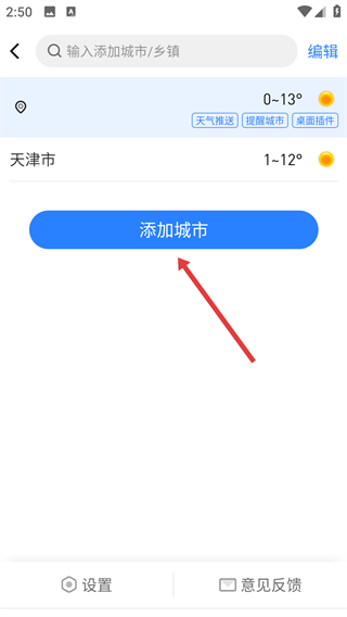 1、打开即刻天气App,点击【添加城市】按钮,进入城市选择页面呢。