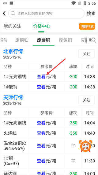 1、在app首页,点击【市场行情】旁的【查看更多】,进入价格中心页面。