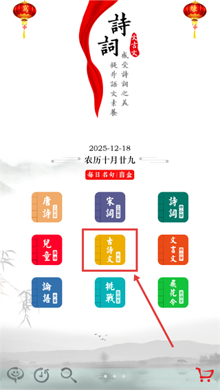 1、进入主界面,找到被标注的【古詩文-大全】选项并点击。