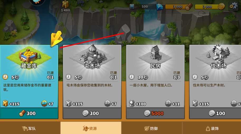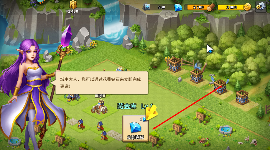 4、可以通过花费钻石来立即完成建造,这样第一个Lv1就完成了
