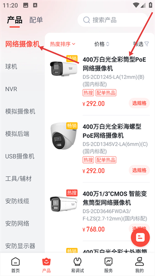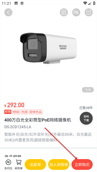 2、产品参数查询与配单:可便捷查询海康威视全品类产品参数,并通过在线配单将方案需求精准传达给指定商家。